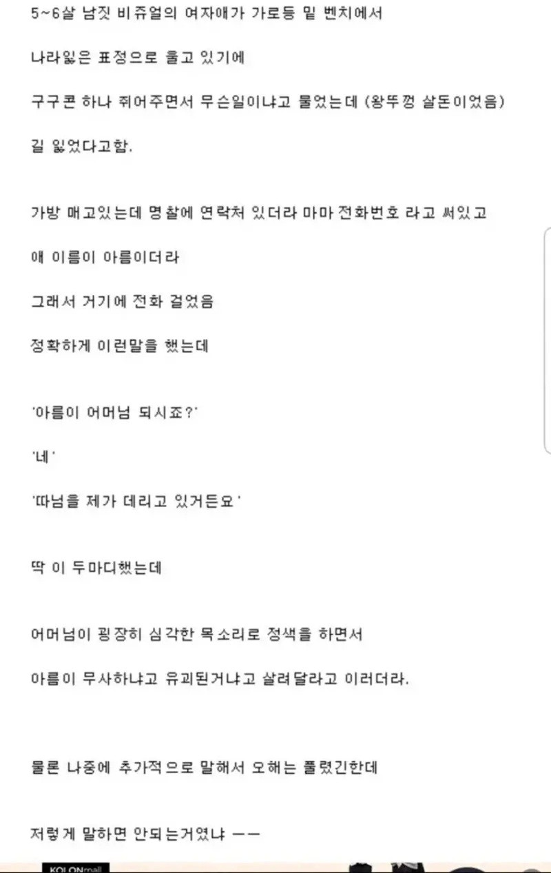 길 잃은 아이 찾아줬는데 오해 받은 썰