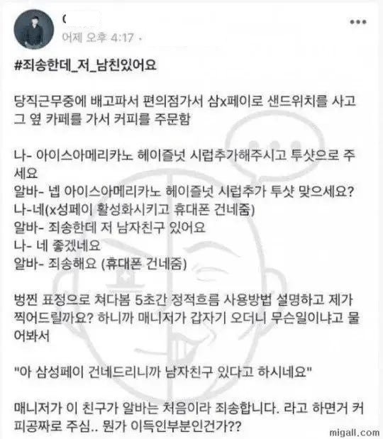 여자 알바에게 차인 남자