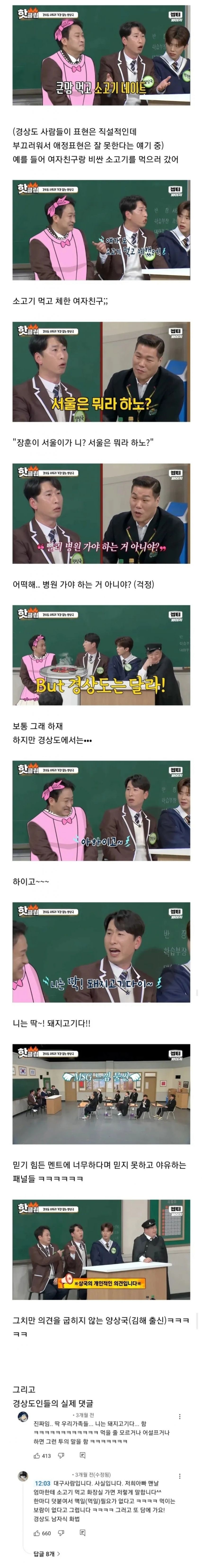 경상도에서 소고기 먹다가 체하면 듣는다는 말