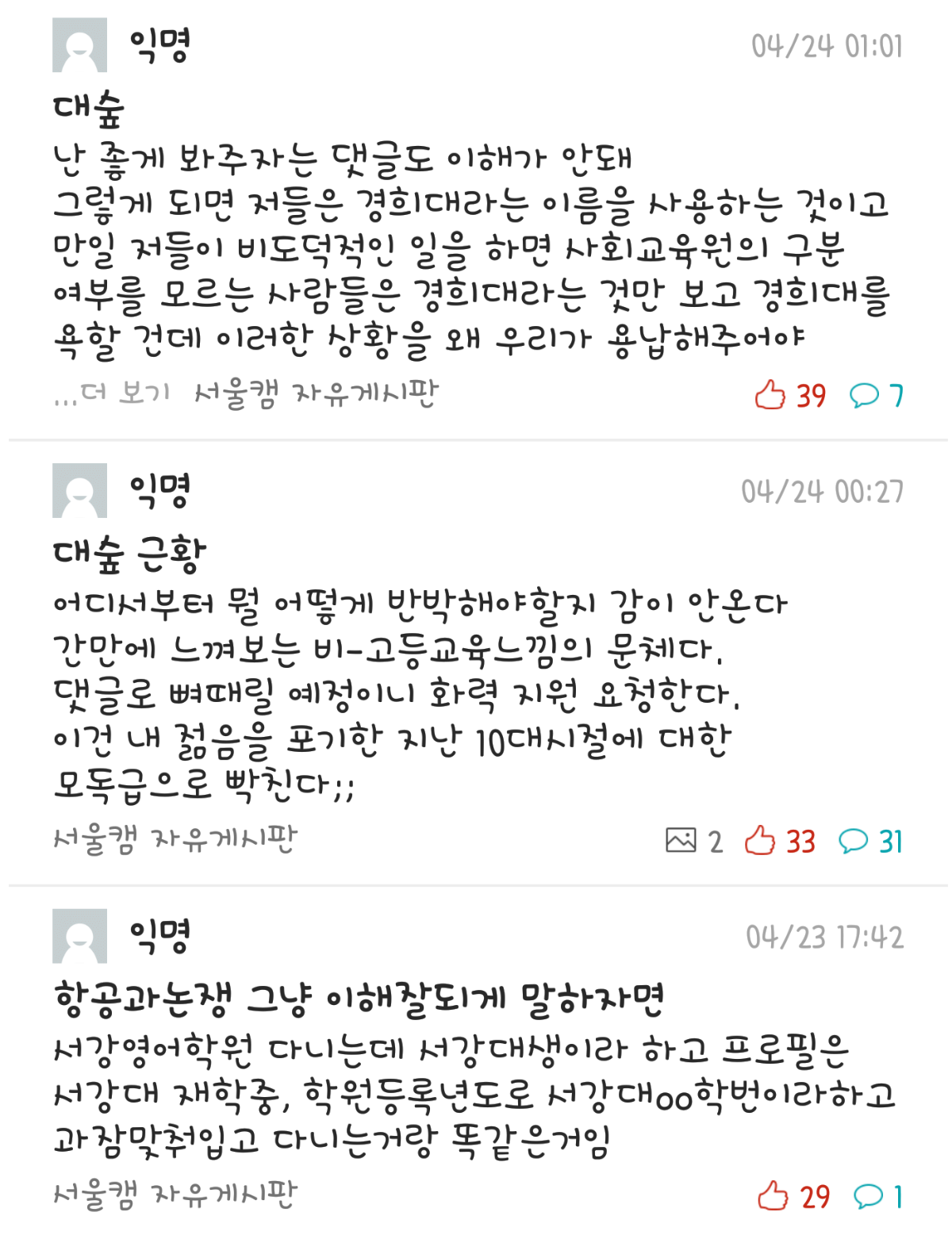 시작은 경희대학교 학생들 사이에서 불만이 터져나오면서였음