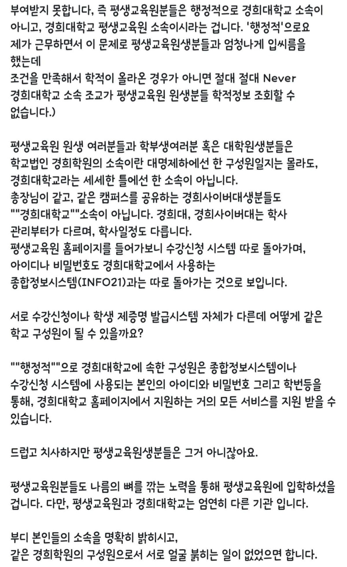 지금 논란은 <경희대학교>랑 <경희글로벌미래교육원> 사이 문제ㅇㅇ