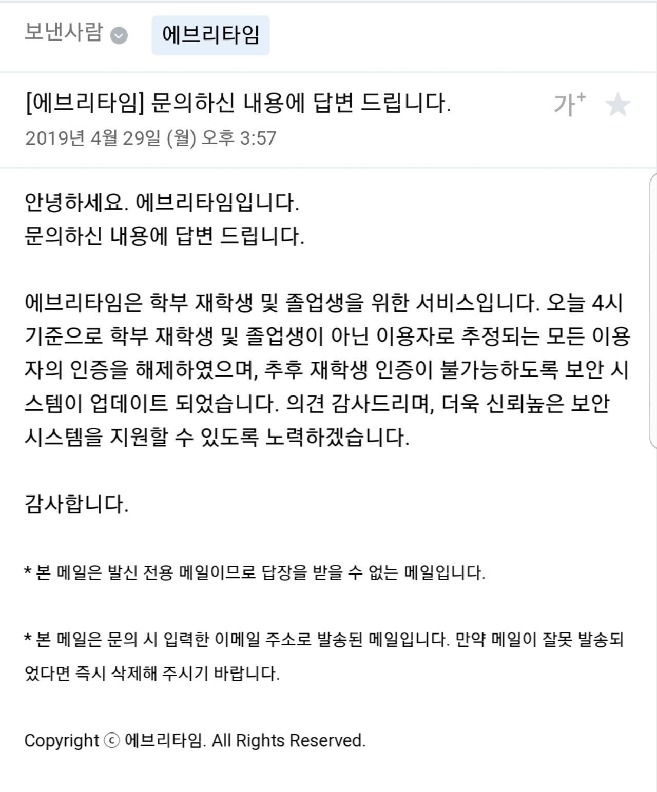 평생교육원 애들도 가입 가능했던 에브리타임이라는 어플 경희대 학부생 제외하면 모두 탈퇴처리