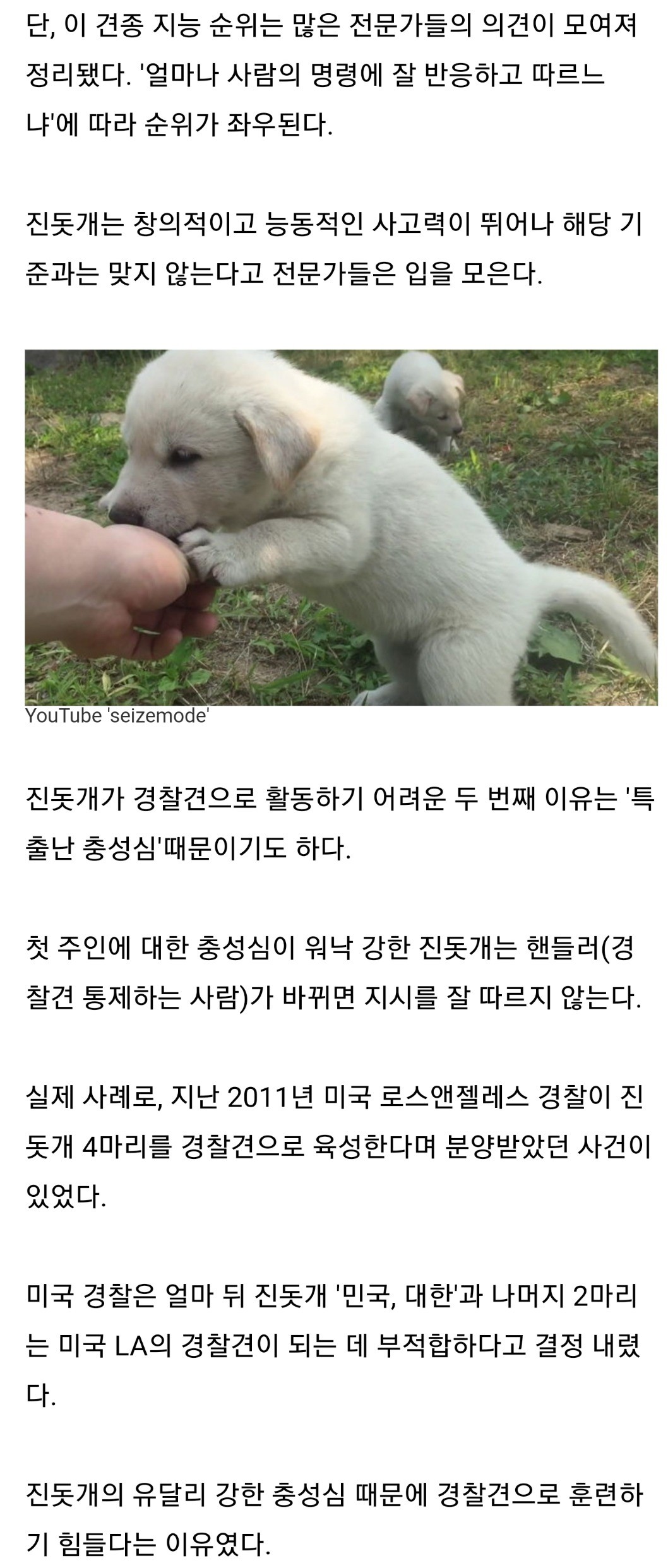 우리나라 토종견 '진돗개'가 경찰견이 되기 어려웠던 의외의 이유