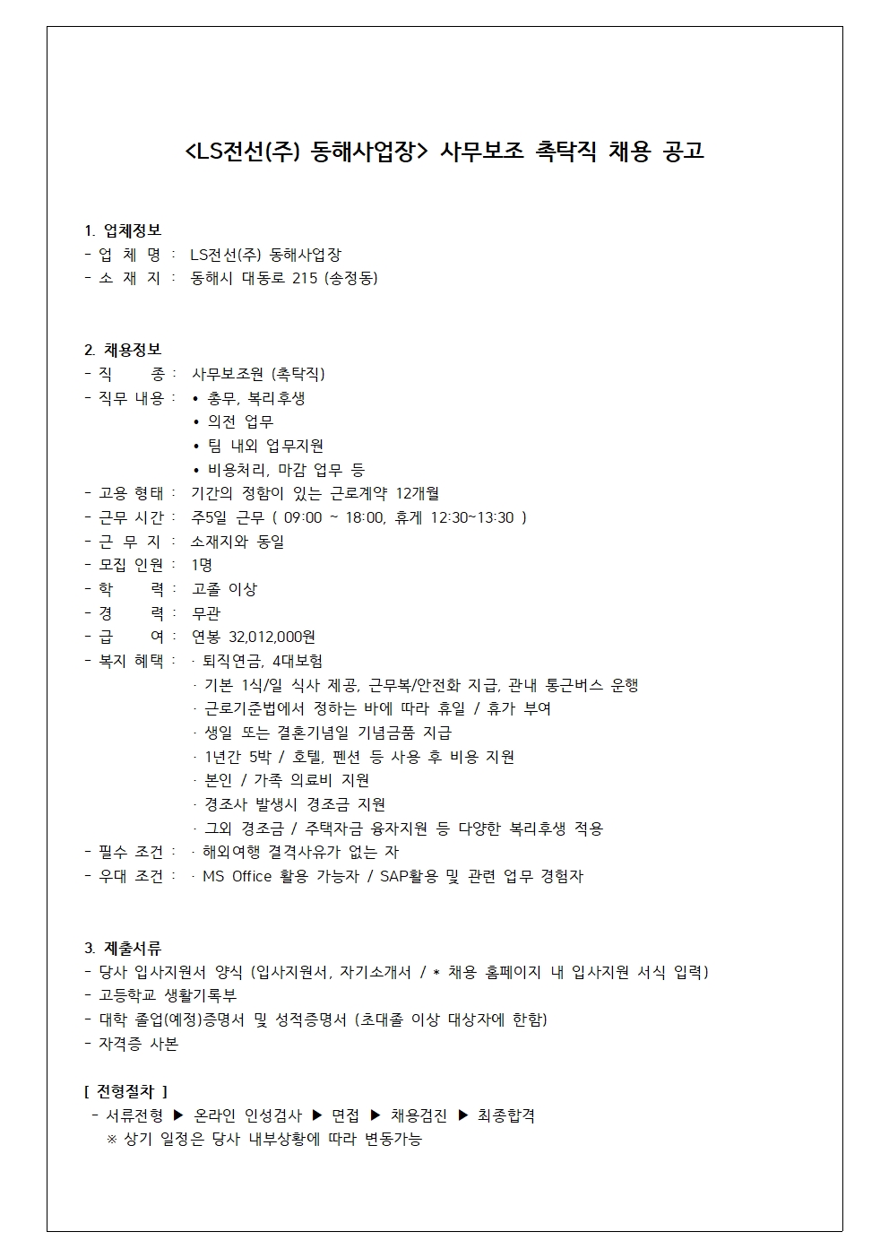 [동해시/구인] 사무보조 촉탁직 채용 공고