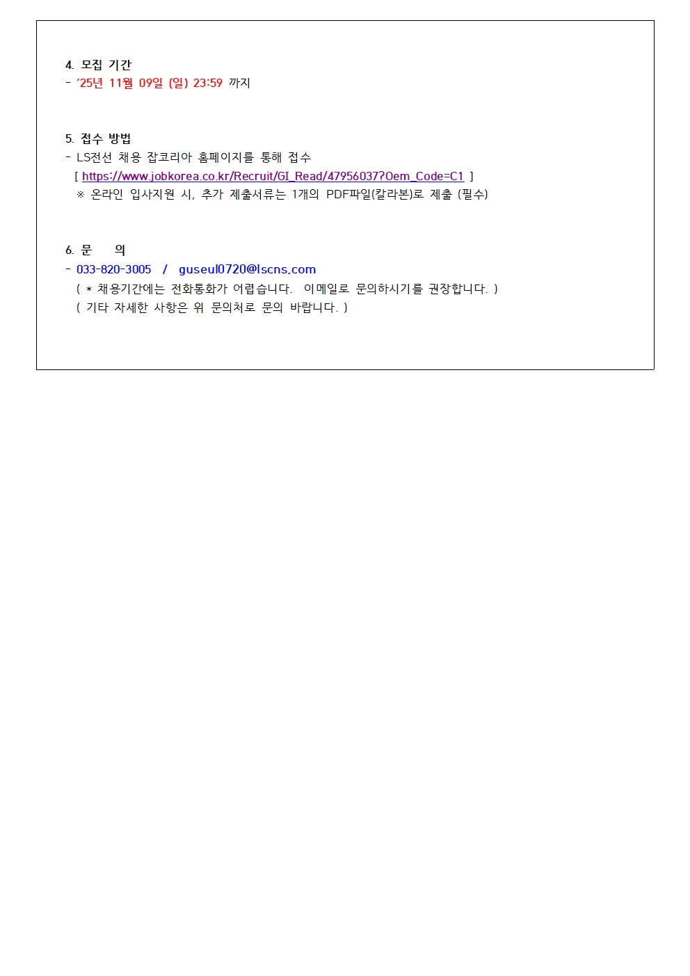 이미지 확대보기 - LS전선 채용 잡코리아 홈페이지를 통해 접수