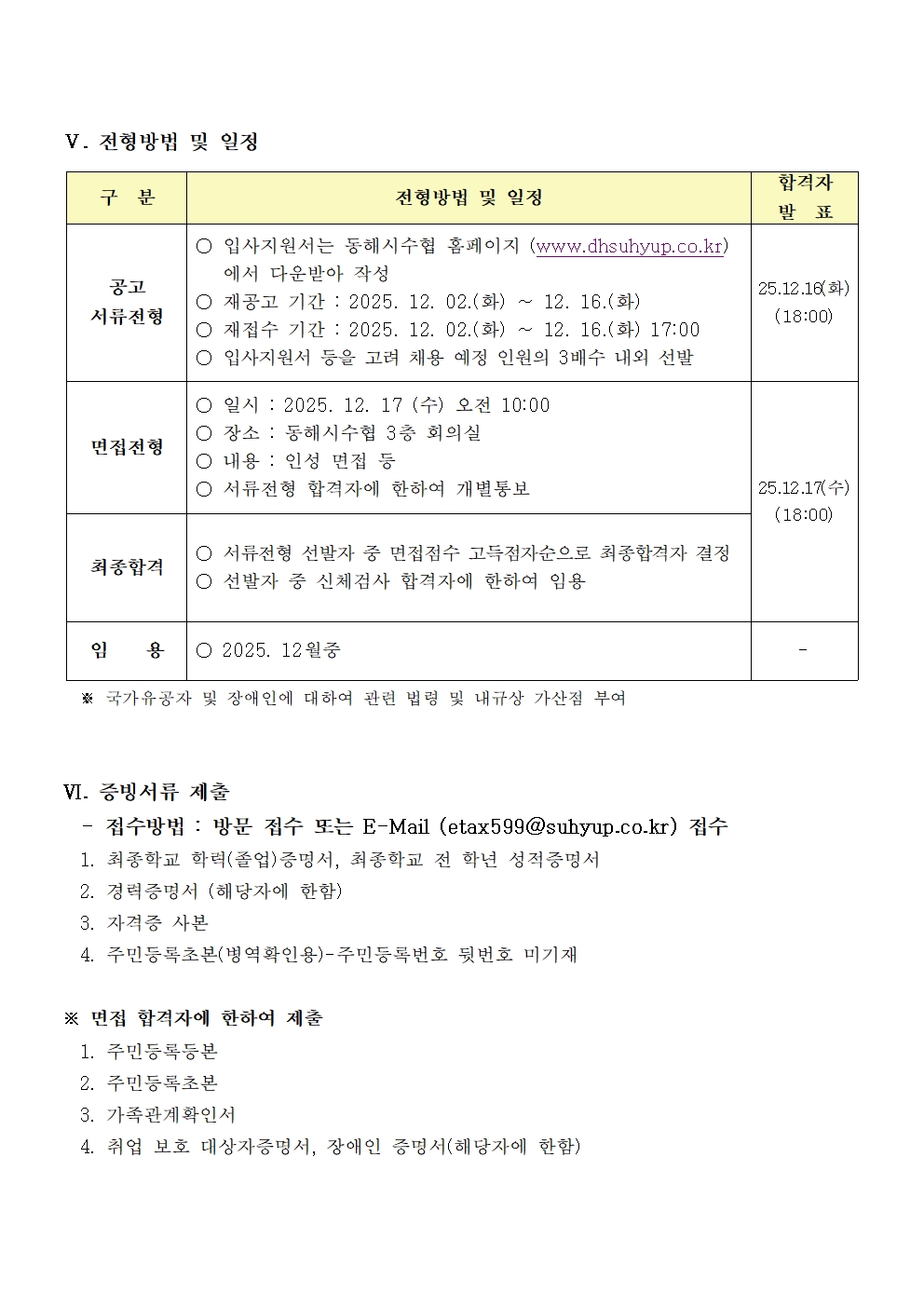 [동해시/구인] 2025년도 직원(계약직_텔러업무 및 일반사무직) 공개채용 공고