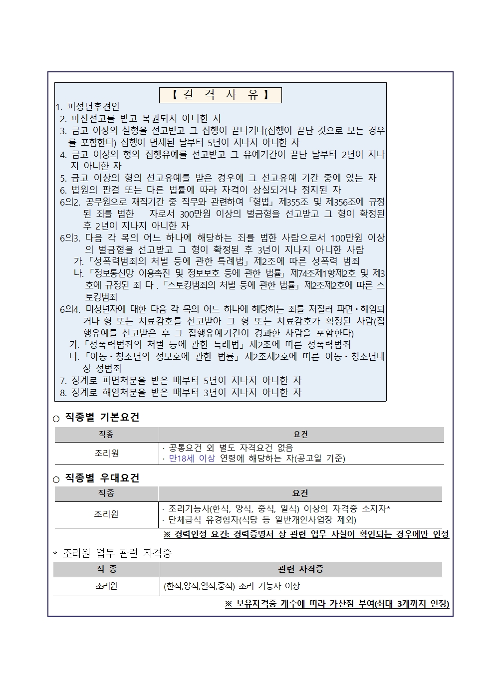 [동해시/구인] 삼척생활관 기간제 계약직(조리원) 신규채용 공고(1차)