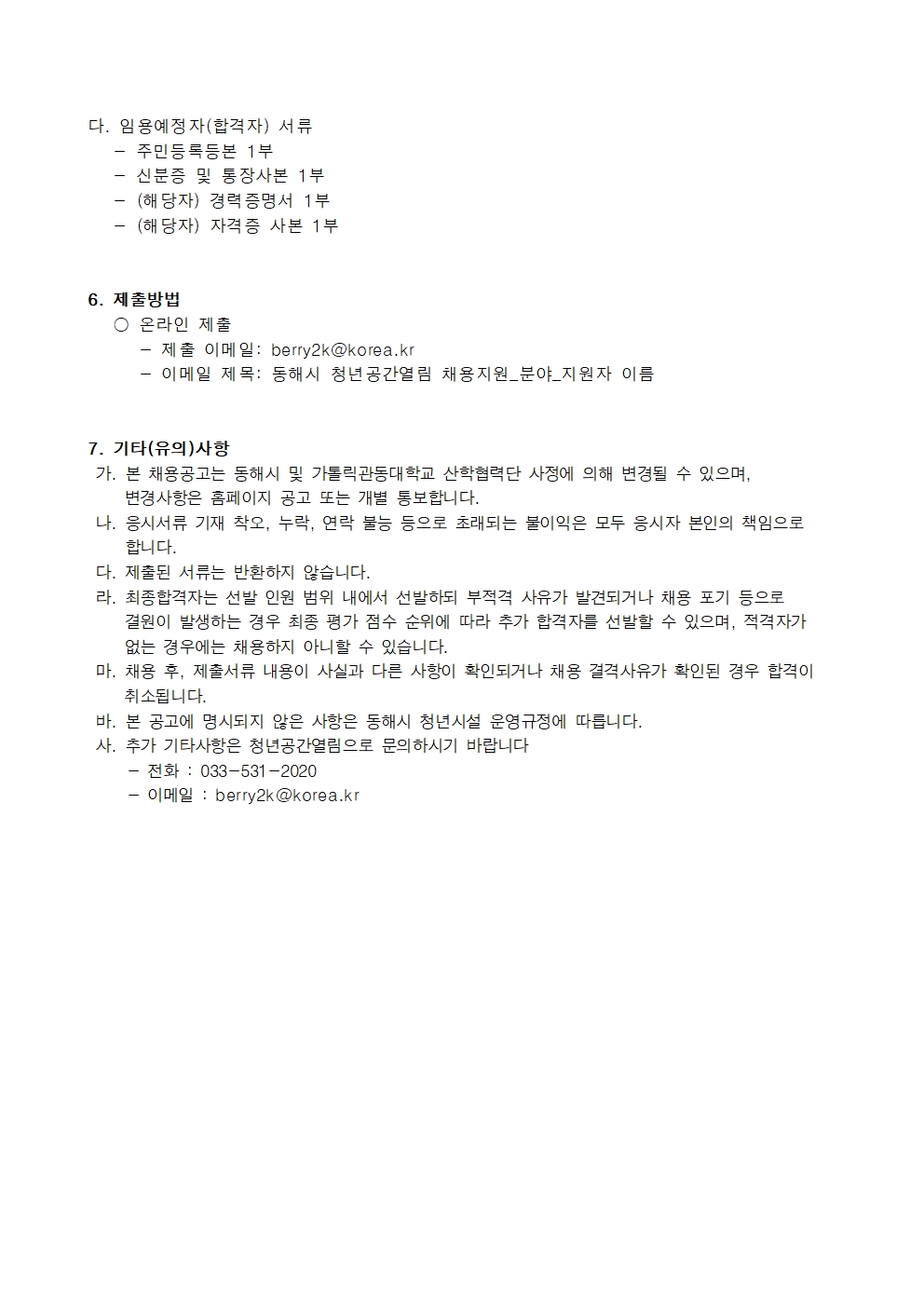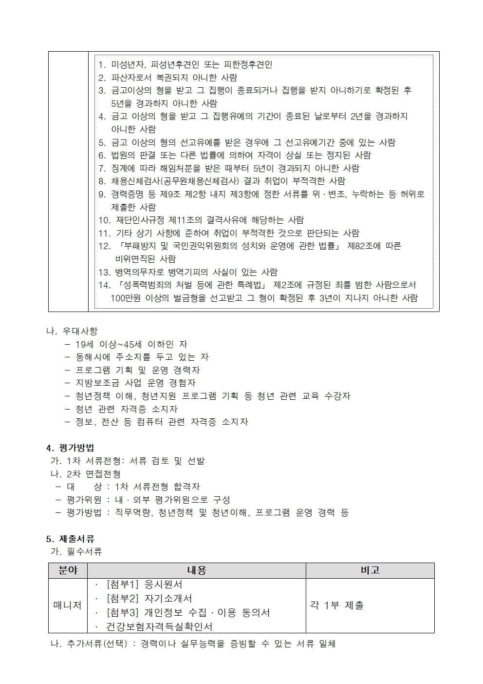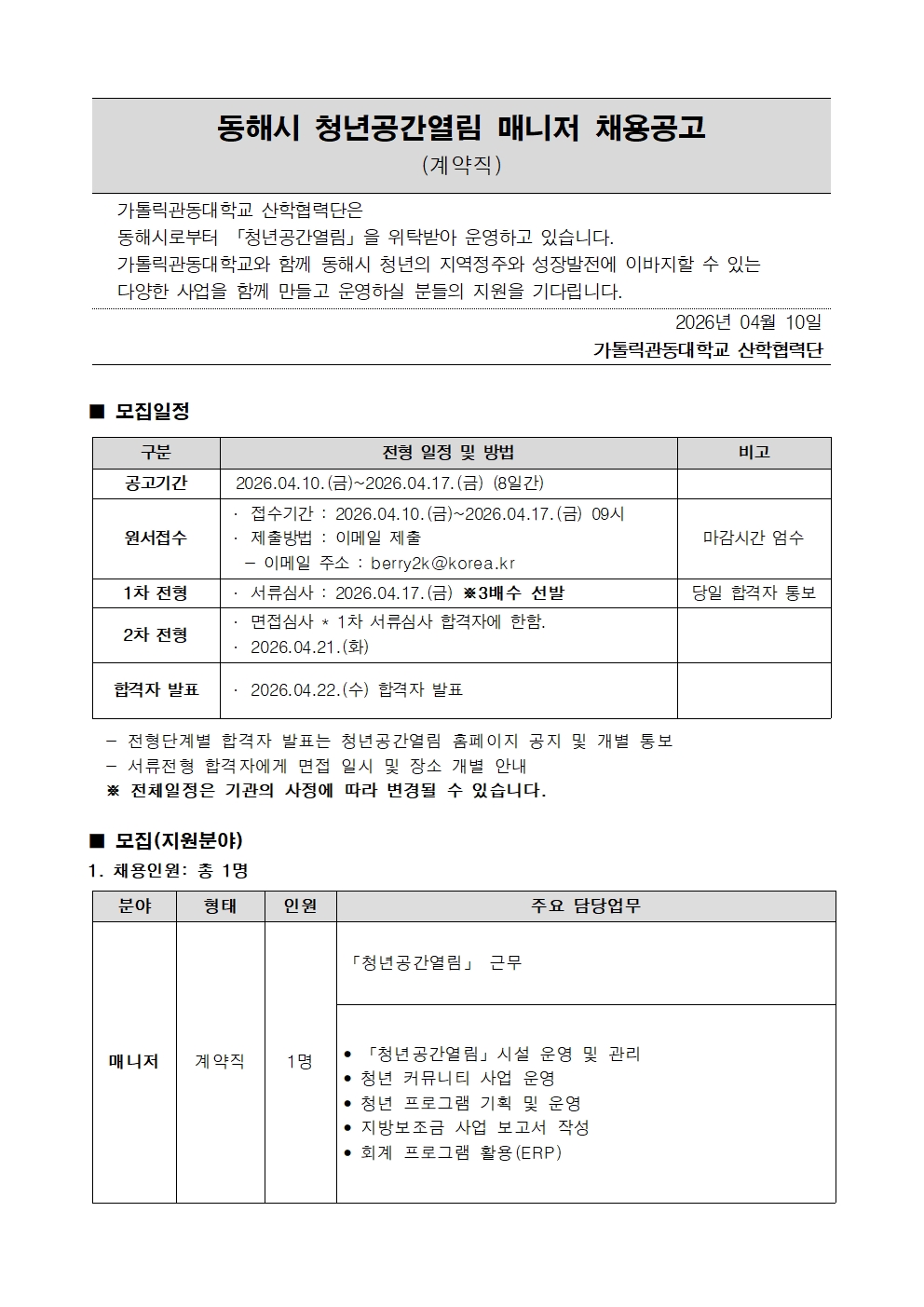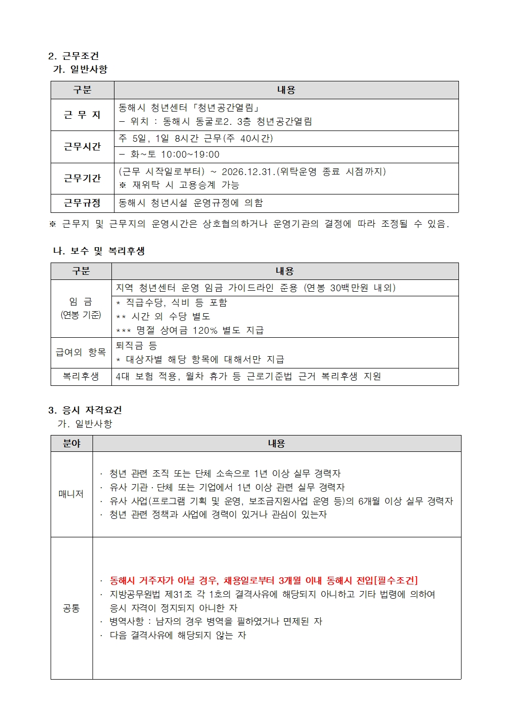 [동해시/구인] 동해시 청년공간열림 매니저 채용 공고 ( ※동해시청 채용대행 중 )