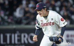 롯데 김원중이 28일 사직 키움전에서 5-4 승리를 확정한 뒤 기뻐하고 있다. 사진 롯데 자이언츠 프로야구 최하위 롯데 자이언츠의 수호신 김원중이 돌아왔다. 1점차 리드를 지키며 마무리로서의 귀환을 알렸다 롯데는 28일 부산 사직구장에서 열린 키움 …