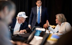미국 백악관이 28일(현지시간) 소셜미디어 X(옛 트위터)에 올린 사진. 도널드 트럼프 대통령(왼쪽)이 이날 오전 플로리다주 팜비치 마러라고 사저에 마련된 상황실에서 마코 루비오 국무장관(가운데)이 지켜보는 가운데 수지 와일스 백악관 비서실장과 대화하고 있다. 사진 백악관 X 캡처