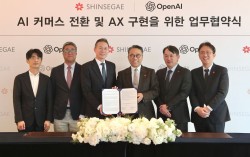 6일 웨스틴 조선 서울에서 신세계그룹과 오픈AI의 ‘AI 커머스 사업협력’ 행사 협약식이 진행됐다. 협약식에는 (오른쪽부터) 임영록 신세계그룹 경영전략실장(사장), 김경훈 오픈AI 코리아 총괄대표가 참석했다.사진 신세계그룹 신세계그룹이 오픈AI의 인공지능(AI) …