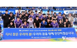 17일 대전 삼성화재전에서 승리해 준플레이오프 진출을 확정지은 우리카드 선수단. 사진 한국배구연맹 남자 프로배구 우리카드가 삼성화재를 꺾고 2년 만에 포스트시즌 진출 티켓을 따냈다. 우리카드는 17일 대전 충무체육관에서 열린 진에어 2025~2026…