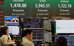 코스피가 상승 출발해 5900선을 재돌파한 14일 서울 중구 하나은행 본점 딜링룸 현황판에 코스피, 코스닥 지수와 환율이 표시되고 있다. 연합뉴스 코스피가 14일 장중 6000선을 재돌파했다. 이날 오전 10시 12분쯤 코스피는 전장보다 191.56포인트(3.30…