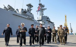 노동신문은 지난 12일 5000톤급 구축함 '최현호'에서 김정은 국무위원장 참관 아래 전략순항미사일과 대함 미사일 발사 시험을 진행했다고 14일 밝혔다. 노동신문, 뉴스1 김정은 북한 국무위원장이 취역을 앞둔 5000t급 신형 구축함인 ‘최현호’에서 진행…