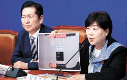 '윤석열 정권 정치검찰 조작기소 의혹 사건 진상규명 국정조사특별위원회' 서영교 위원장이 13일 오전 국회에서 열린 중간보고회에 참석해 수원지검 창고 사진을 들고 발언하고 있다. 김성룡 기자 국회 '윤석열 정권 정치검찰 조작기소 의혹 진상규명' 국정조사특별위원회(국…