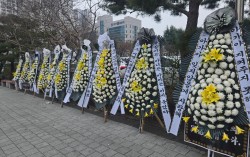 25일 오전 대구시 수성구 대구지방법원 정문 앞에 아동학대살해 혐의로 재판에 넘겨진 30대 친부에 대한 엄벌을 촉구하는 내용의 근조 화환 10여 개가 깔렸다. 사진 독자 태어난 지 한 달 된 아들을 때려 숨지게 한 후 시신을 유기한 혐의로 재판에 넘겨진 …