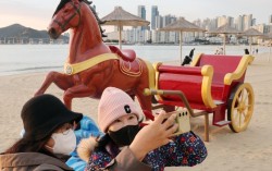 새해 2026년 병오년 붉은 말의 해를 앞두고 22일 부산 수영구 광안리해수욕장에 말 모양의 새해 조형물이 설치돼 시민과 관광객들의 눈길을 끌고 있다. 조형물은 높이 2.2m, 길이 2.5m 규모다.