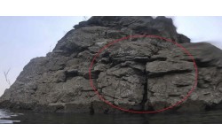 단양군은 지난달 도담삼봉 정밀 조사를 진행해 첩봉 상단(빨간원 주변)에서 깨짐 현상을 확인했다. 사진 수중현황조사 보고서 봉우리 상부서 ‘절리’ 다수 확인 충북 단양군이 국가자연유산 명승인 도담상봉을 정밀 조사해 ‘첩봉’ 상단에서 균열 현상을 발견했다. …