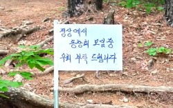 사진 JTBC 사건반장 캡처 한 공원 등산로 입구에 '정상에서 동창회 모임 중. 우회 부탁드립니다'는 팻말이 세워져 공분을 샀다. 19일 JTBC '사건반장'에 따르면, 제보자 A씨는 17일 경기 포천의 한 호수공원에서 이같이 적힌 팻말을 발견했다. A…