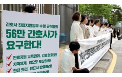 대한간호협회를 비롯한 전국 시도간호사회와 산하단체가 20일 세종시 정부세종청사 보건복지부 앞에서 기자회견을 열고 간호진료지원업무 교육의 간호협회 전담을 요구하며 보건복지부의 일방적 진료지원업무 추진을 규탄하고 있다. 뉴스1 앞으로 진료지원(PA) 간호사가…