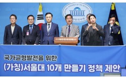 더불어민주당 김영배 의원과 일부 전·현직 국립대 총장과 교육감들이 20일 서울 여의도 국회 소통관에서 기자회견을 열고 '국가균형발전을 위한 (가칭)서울대 10개 만들기' 정책 제안을 하고 있다. 연합뉴스 전·현직 국립대 총장, 교육감 26명이 대통령 후보들에게 ‘…