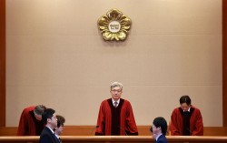 김상환 헌법재판소장과 재판관들이 2월 26일 서울 종로구 헌법재판소에서 2월 심판사건 선고를 위해 대심판정에 참석하고 있다. 뉴스1 사법3법(재판소원법·법왜곡죄·대법관 증원법) 시행을 앞둔 10일 법안의 위헌성 소지를 줄이기 위해서는 국민 투표가 필수인 …