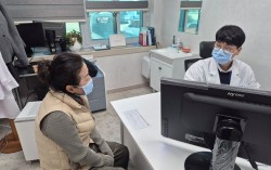 지난 4일 오전 경남 합천군 보건소를 찾은 주민이 공중보건의사에게 진료를 받고 있다. 이 보건소는 다음 달 복무 만료하는 공중보건의사 2명이 장기 휴가에 들어가면서, 보건지소를 담당하던 공중보건의사 3명이 번갈아가며 보건소 일반 진료를 담당 중이다. 안대훈 기자 …
