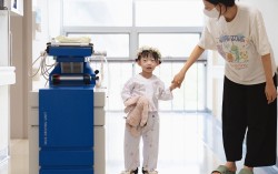 지난해 세브란스 병원에서 '체외형 심실보조장치(바드·VAD)'를 단 김이은(4)양이 품에 인형을 들고 서 있다. 사진 김기홍씨 4살 이은이는 자기 키를 훌쩍 넘는 냉장고만 한 크기의 ‘바드(VAD)’와 늘 함께 다닌다. 바드는 체외형 심실보조장치로, 심장…
