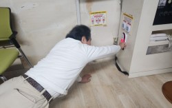 김두상씨가 지난 5일 당시 119 비상벨을 눌렀을 때 모습을 재현하고 있다. 김정석 기자 “대수롭지 않게 여겼던 벨인데…. 119 비상벨이 없었다면 전 아마 이 자리에 있지 못했을 겁니다.” 지난 16일 경북 구미시 봉곡동 경구중학교 숙직실. 이 학…