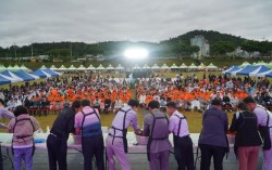 지난해 5월 전남 나주시 영산강 둔치체육공원 일원에서 열린 ‘제20회 영산포 홍어축제’ 현장에서 윤병태 나주시장을 비롯한 축제 참석자들이 홍어무침 행사를 하고 있다. [사진 나주시] 남도의 대표 음식인 숙성 홍어를 테마로 한 축제가 홍어 산지인 전남 신안…