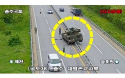 19일 낮 12시 30분쯤 충북 충주시 앙성면의 한 왕복 4차로 국도에서 육군 모 부대 장갑차가 중앙분리대 위에 올라타는 사고가 발생했다. 사진 독자, 연합뉴스 19일 낮 12시 30분쯤 충북 충주시 앙성면의 한 왕복 4차로 국도에서 장갑차가 중앙분리대를…