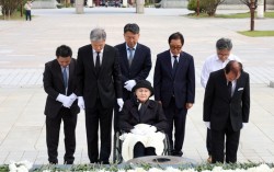 19일 노태우 전 대통령의 부인 김옥숙 여사가 아들 노재헌 동아시아 문화센터 원장과 광주 북구 국립5·18민주묘지를 찾아 참배하고 있다. 연합뉴스 고(故) 노태우 전 대통령의 부인 김옥순(90) 여사가 광주광역시 국립5·18민주묘지를 방문해 오월 영령들의…