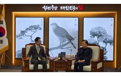 10일 오후 충남도청 외부인접견실에서 김태흠 충남지사(오른쪽)와 국민의힘 장동혁 대표가 회동하고 있다. 신진호 기자 국민의힘 장동혁 대표가 10일 김태흠 충남지사에게 지방선거 공천을 신청해달라고 요청했다. 張 "도민들이 지사 진심 이해하는 계기" …