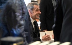 니콜라 사르코지 전 프랑스 대통령이 10일(현지시간) 프랑스 파리의 한 서점에서 열린 자서전 『수감자의 일기』 출간 기념 사인회에서 방문객들과 인사하고 있다. AFP=연합뉴스 니콜라 사르코지 전 프랑스 대통령이 극우 정당 국민연합(RN)을 이끄는 마린 르…