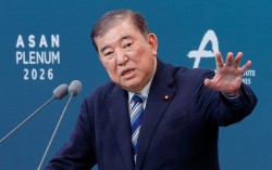 이시바 시게루 전 일본 총리가 8일 오전 서울 용산구 그랜드 하얏트에서 아산 플래넘(Asan Plenum) 2026 개회식 기조연설을 마친 뒤 참석자 질문에 답하고 있다 뉴스1 이시바 시게루(石破茂) 전 일본 총리는 8일 “미·일과 한·미 핵 억제의 신뢰…