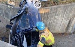 2022년 12월 급발진 의심 사고 당시 모습. 사진 강릉소방서 법원이 지난 2022년 12월 강원 강릉에서 할머니가 운전한 차에 타고 있던 이도현(사망 당시 12세)군이 숨진 ‘차량 급발진 의심 사고’ 민사소송에서 제조사 측 손을 들어줬다. 13일 춘천지법…