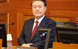 윤석열 전 대통령이 지난 2월 13일 서울 종로구 헌법재판소에서 열린 탄핵심판 8차 변론에 출석해 있다. 뉴스1 윤석열 전 대통령이 오는 12일 열리는 '내란 우두머리 혐의' 형사재판의 세 번째 공판에 지상 출입구를 통해 출석한다. 이에 따라 윤 전 대통령이 법정…