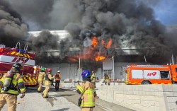 12일 오전 전남 완도군 군외면 한 수산물 냉동창고에서 불이 나 화염이 치솟고 있다. 이날 진화 작업에 투입된 소방관 2명이 숨졌다. [연합뉴스] 전남 완도군의 한 냉동창고 화재 현장에 출동한 소방관 2명이 진화 작업 중 건물 안에서 숨졌다. 소방당국은 …