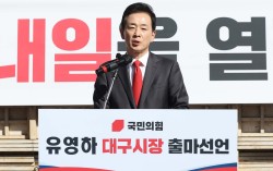 국민의힘 유영하 의원이 9일 오후 대구 중구 삼성상회 터에서 오는 6월 지방선거에서 대구시장 출마를 선언하는 기자회견을 하고 있다. 연합뉴스 국민의힘 유영하 의원이 9일 대구시장 선거 출마를 공식 선언했다. 유 의원은 이날 오후 대구 중구 삼성상회 …