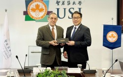대구한의대 변창훈 총장(오른쪽)과 마카오 세인트조셉대 알레한드로 살세도 총장대행(왼쪽). 글로컬대학 대구한의대학교(총장 변창훈)는 최근 마카오 세인트조셉대학교(University of Saint Joseph, 이하 USJ)를 방문해 K-MEDI 기반 산학…