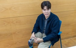 지난 8일 서울 용산구 한남동에서 만난 김세진씨가 인터뷰 도중 자신의 의족을 설명하고 있다. 사진 컴패션 두 다리와 오른손 일부가 없는 선천성 장애를 가지고 국가대표 수영선수, 아시아 최초 ‘접근성 스페셜리스트’ 등으로 활동하던 ‘로봇다리’ 김세진(28)…