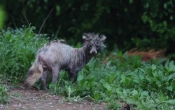 지난 24일 오후 인천시 연수구 송도동 수변 산책로에서 '개선충'에 감염된 것으로 보이는 너구리가 이동하고 있다. 연합뉴스 인천 송도국제도시 도심 공원에서 털이 빠진 너구리가 발견돼 관할 지자체인 연수구가 조사에 나섰다. 27일 송도 지역커뮤니티 카페에 따르…