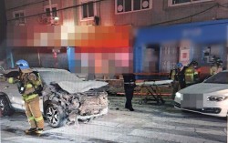 27일 오전 부산 사상구의 한 도로에서 좌회전하던 승용차와 반대 차로에서 직진하던 승용차가 충돌했다. 사진 부산경찰청 음주운전 차량과 신호위반 차량이 충돌해 1명이 숨지고 4명이 다쳤다. 경찰에 따르면 27일 0시 3분쯤 부산 사상구 감전동 한 도로에서 직진…