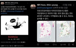 지난달 28일 윤신영(46)씨가 자체 제작한 싱크홀 지도를 엑스(X·옛 트위터)에 업로드했다. 사진 온라인 커뮤니티 캡처 지난달 24일 서울 강동구 명일동에서 지름 최대 20m짜리 싱크홀 발생 이후 서울시가 지반침하 안전지도를 공개하지 않는 것을 두고 논란인 가…
