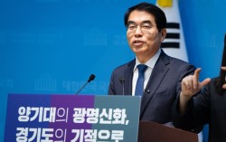양기대 전 더불어민주당 의원이 18일 서울 여의도 국회 소통관에서 기자회견을 열고 경기도지사 출마를 선언하고 있다. 뉴스1 양기대 전 더불어민주당 의원은 18일 국회와 경기도의회에서 기자회견을 열고 내년 지방선거에서 경기지사 도전을 공식화했다. 민주당 인…