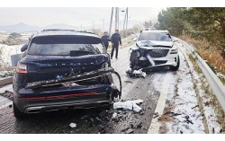 지난 4일 전북 고창군 대산면 산수리의 한 차도에서 블랙아이스로 인한 차량들의 추돌사고로 도로가 막혀 있다. 사진 고창소방서 11일 서울을 비롯한 전국에 비 또는 눈이 내리고, 그친 뒤에는 기온이 10도가량 급강하할 전망이다. 이에 도로 곳곳에는 대형사고…