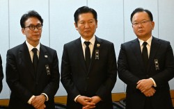 지난 1월 27일 서울 종로구 서울대학교병원 장례식장에 마련된 이해찬 민주평화통일자문회의 수석부의장의 빈소에서 김민석 국무총리, 정청래 더불어민주당 대표, 김부겸 전 총리기 조문객을 맞이하고 있다. 뉴스1 김부겸 전 국무총리의 대구시장 선거 출마가 초읽기에 들어갔…