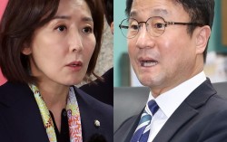 나경원 국민의힘 의원이 25일 오전 서울 여의도 국회에서 '민주당의 상임위독식예고 규탄, 법사위원장 야당에 반환촉구' 기자회견을 하고 있다. 오른쪽은 한병도 더불어민주당 원내대표가 24일 전북 전주시 전북특별자치도의회 기자실에서 현안 관련 간담회를 열고 질의에 답변을 …