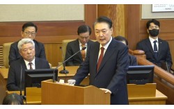 윤석열 대통령이 지난 2월 25일 오후 서울 종로구 헌법재판소에서 열린 대통령 탄핵심판 최종(11차) 변론기일에 출석해 최종의견을 진술하고 있다. 헌법재판소 제공 윤석열 전 대통령이 내란 혐의 형사 사건 첫 재판에 출석해 내란 우두머리 혐의를 전면 부인했…
