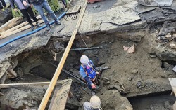 14일 오전 7시쯤 부산 사상구 감전동에서 지름 3m, 깊이 2m 크기의 싱크홀이 발생했다. 사진 사상구청 부산에서 이틀 연속 싱크홀(땅꺼짐)이 이어졌다. 14일 부산 사상구에 따르면 이날 오전 7시쯤 감전동 새벽시장 맞은편 도로에서 지름 3m, 깊이 2m …